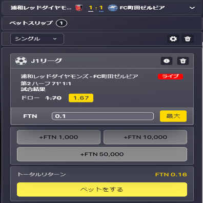 BIGBET-CASINOでは、日本円とFTNウォレットが分かれており、2つの通貨を使ってベットすることができます。FTNモードに切り替えると、スポーツベッティングからカジノゲームまで、FTNトークンでベットすることができます。